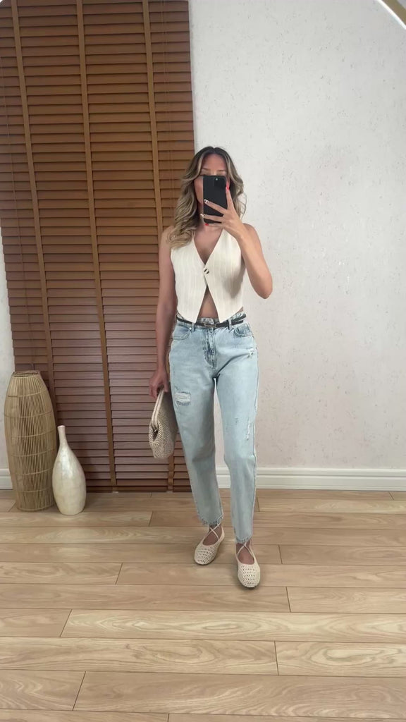 Beatriz Çizgili Yelek Natural